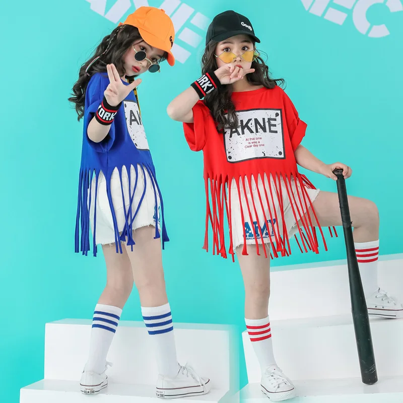 Children Jazz Dance Costumes Tassels Cotton Tops White Short Kids Girls Hip Hop Clothing Catwalk Ch