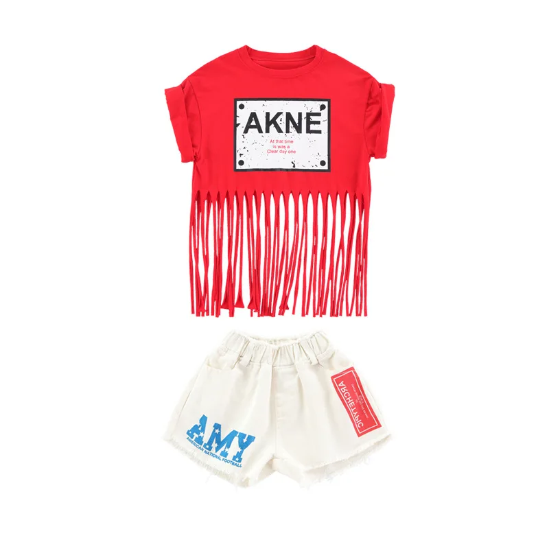 BEST QUALITY Children Jazz Dance Costumes Tassels Cotton Tops White Short Kids Girls Hip Hop Clothing Catwalk Ch