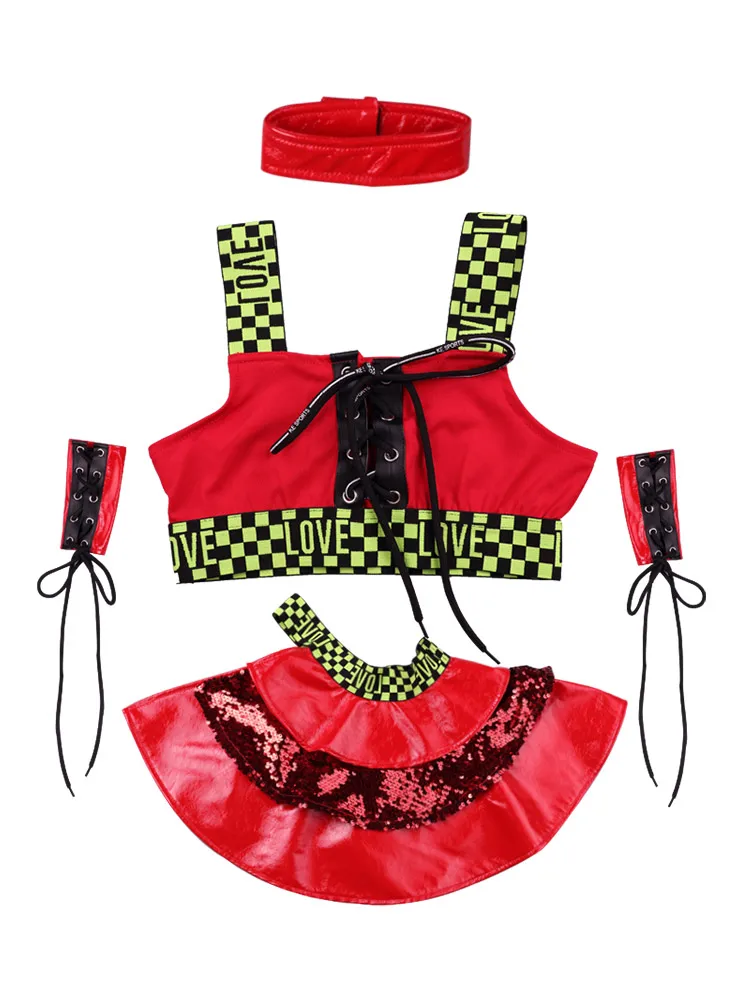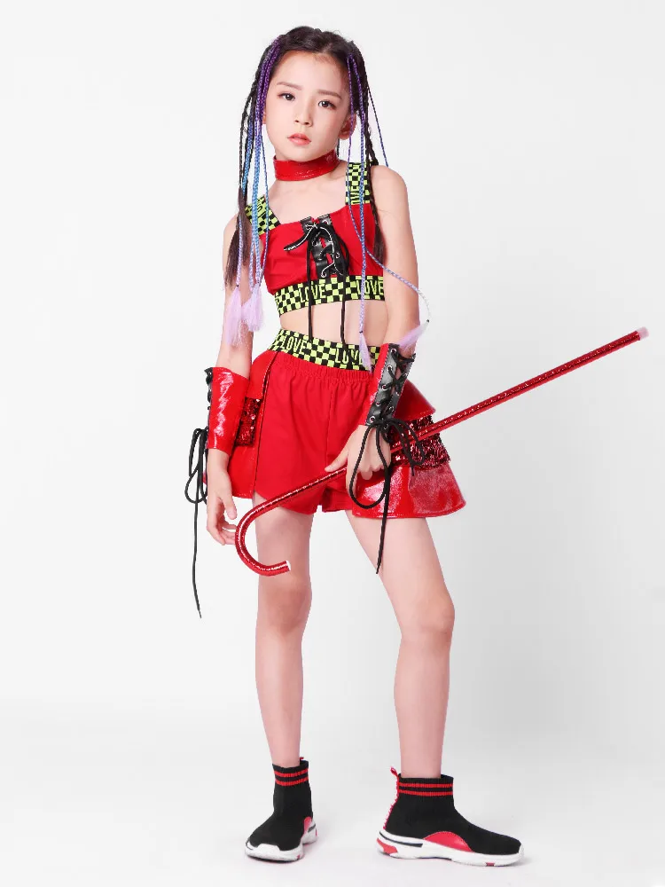HOT Sale Children Sequins Stage Vest Short Skirt Dancewear Kid Hip-hop Jazz Dance Suit Modern Dance Clothing